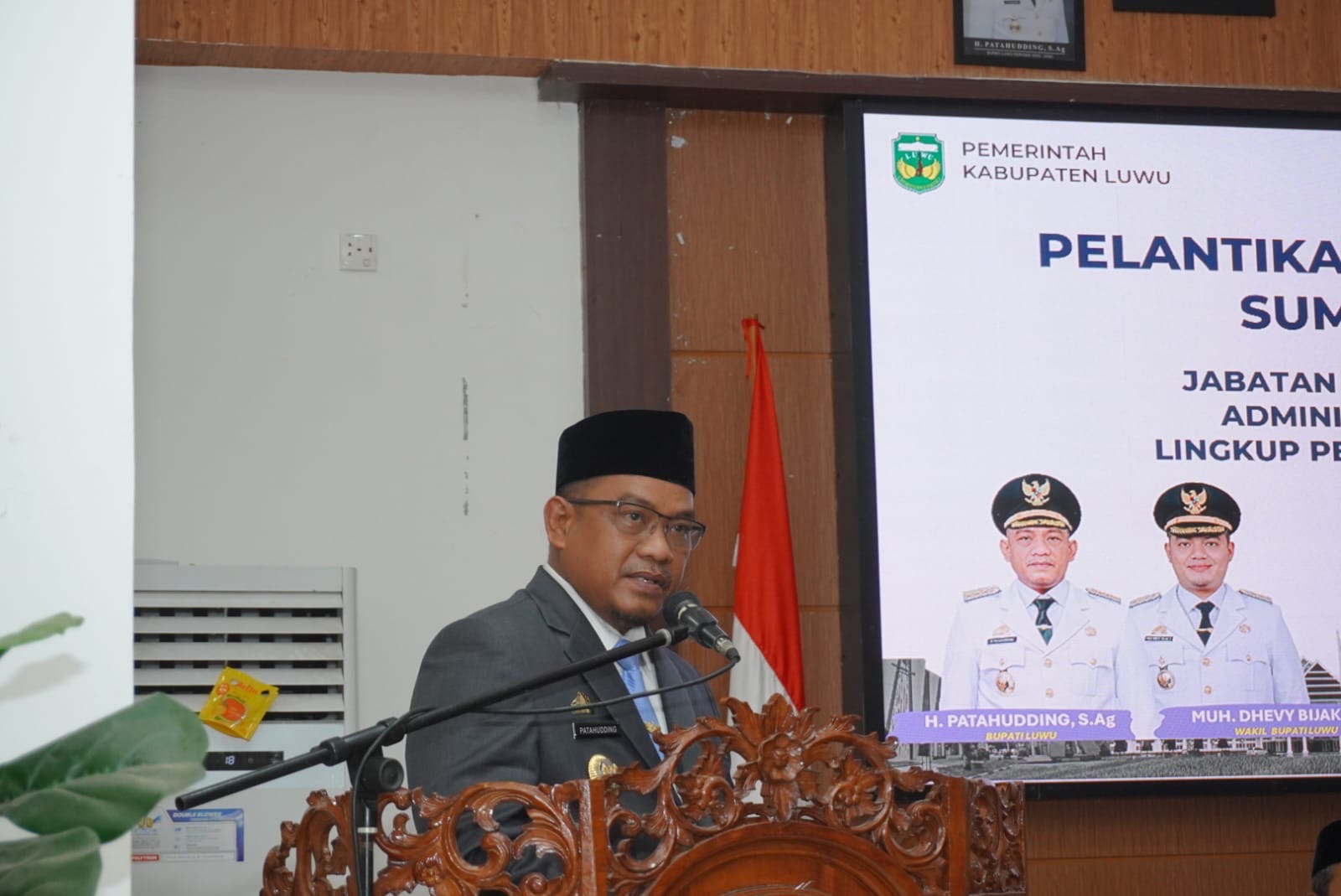 Dalam sambutannya, Bupati Luwu, Patahudding, menyampaikan bahwa pelantikan tersebut memiliki makna khusus karena bertepatan dengan satu tahun masa kepemimpinannya.