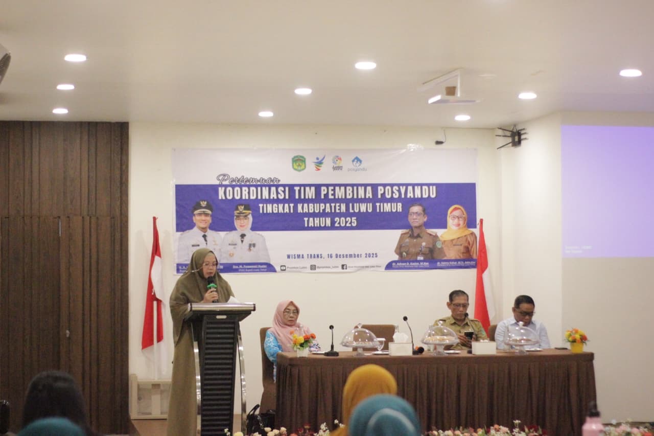 Luwu Timur, Sulsel- Pemerintah Kabupaten Luwu Timur (Pemkab Lutim) melalui Dinas Kesehatan terus memperkuat peran Posyandu sebagai pusat pemberdayaan masyarakat melalui Pertemuan Koordinasi Tim Pembina Posyandu Tingkat Kabupaten Tahun 2025 yang digelar di Wisma Trans, Malili, Selasa (16/12/2025).