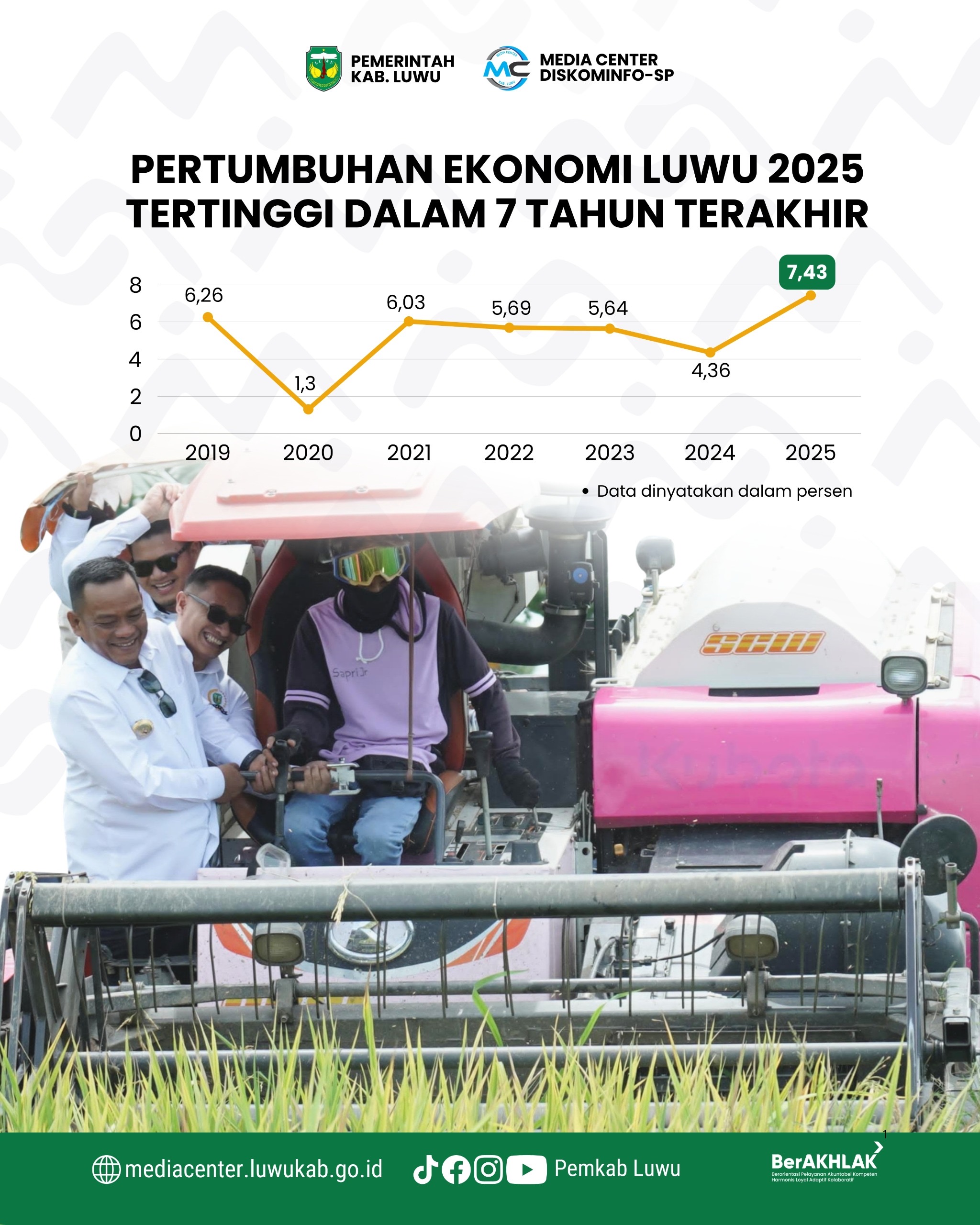 “Capaian pertumbuhan ekonomi ini menjadi indikator bahwa arah pembangunan daerah berada pada jalur yang tepat. Pemerintah akan terus memperkuat sektor unggulan, khususnya pertanian, sekaligus mendorong peningkatan investasi dan daya beli masyarakat,” ujar Patahudding.